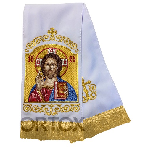 Даний товар реалізується лише з наявності, кількість одиниць на складі уточнюйте у менеджера при оформленні замовлення.’>Закладка для богослужбового Євангелія з костюмної тканини (габардину) з бахромою та вишитими кольоровими іконами.